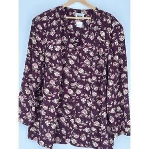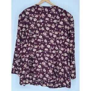 Vintage 80's Leslie Fay button up blouse plus size 22W. The neckline is scalloped around the V-neck creating a very feminine look, rose pattern on a purple background. It is in very good vintage condition, no holes, rips, or stains, the material tag is missing, I am fairly certain this is polyester. The measurements are armpit to armpit is 27", and the length is 31".
