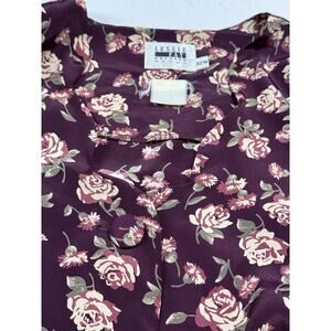 Vtg Leslie Fay Blouse Womens Plus 22W Button Up Roses 3/4 Sleeves 80's V-neck