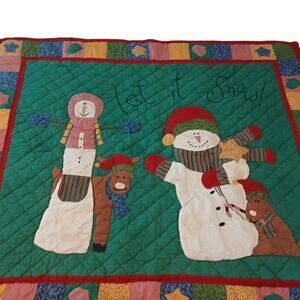 Vtg Let It Snow Christmas Quilted Tapestry Wall Hanging Snowman Decor 56x46 READ