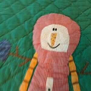 **Please see all pictures for an extension of my written description. There is an opening on the back for a rod to hang it. The snowman on the right has a stain, and there are various stains on the backside.**