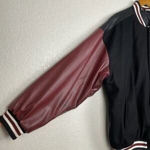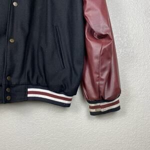Item & Condition: Classic letterman jacket in good preloved condition with mild pilling on ribbed hem and cuffs, staining at cuffs (see photos). Damage to coating on sleeve (see photo). No cracking or peeling. Insulated, lined, slash pockets, snap closure.