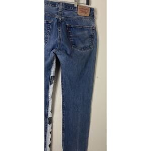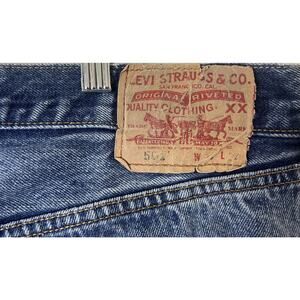 Vtg Levi's 501 Button Fly Blue Denim Jeans Rare Black And White Painted 34×34