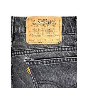 Vtg Levi’s 550 Orange Tab Relaxed Fit Tapered Distressed Black Denim Jeans 36/30