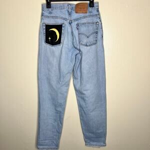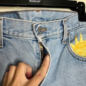 Vtg Levi's 560 Jeans 29x32 Loose Fit Tapered Celestial Hand Painted Artsy Sun