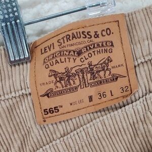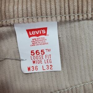 Vtg Levis 565 Corduroy Pants Mens 36x32 Tan Loose Fit Wide Tapered Leg (35x31.5)
