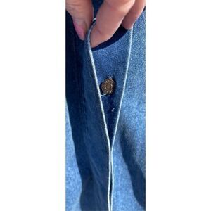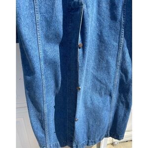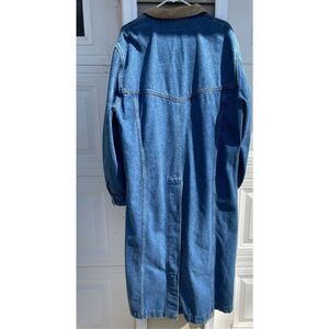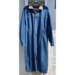 Beautiful long denim jean duster coat 25” across the chest Sleeves 27” Full Length 53”