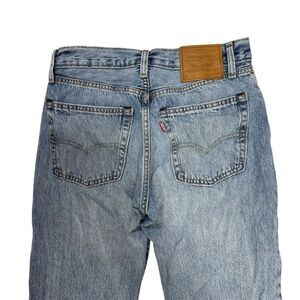 Keywords: Levi's, men's jeans, straight leg, blue denim, regular fit, cotton, medium wash, 5-pocket, casual wear, office wear, button closure, iconic style, durable, pre-owned, classic.