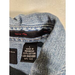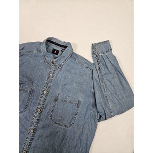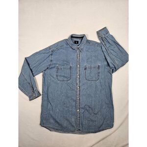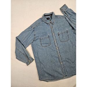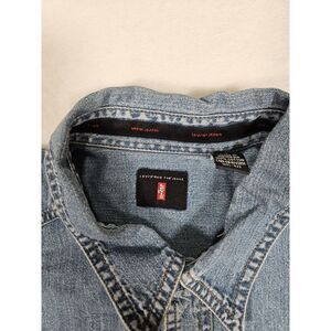 Vtg Levi's Red Tab Blue Denim Jean Shirt Men's Sz Large Metal Buttons Distressed