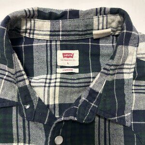 Levis Shirt Mens Large Black Gray Plaid Western Pearl Snap Flannel Standard Fit