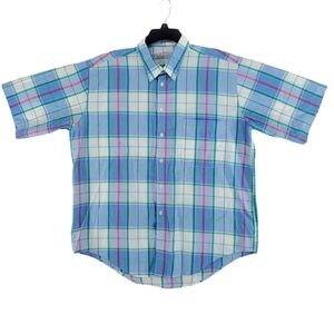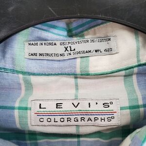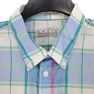 Vtg Levis Shirt Mens XL Tartan Plaid Button Down Blue White Colorgraphs 80s SS