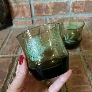 Vtg Libbey Green Juice Glasses w/ Raised Leaves Pattern Set of 2