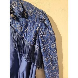 Vtg Lilia Smitty Exclusive Blue Silver Lace Fringe Lace Western Rodeo Dress 9-10