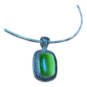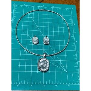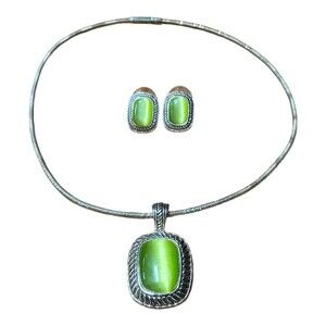 Vtg Lime Green cabochons Choker Necklace and earrings set Silvertone