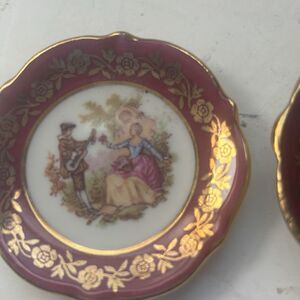Vtg Limoges France La Reine Courting Couple Miniature Plate Set Magenta Gold