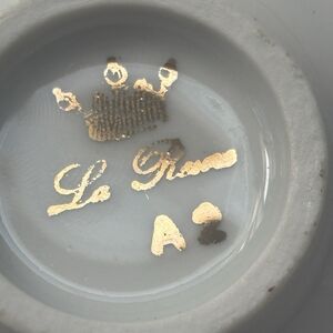 Backstamp: Marked with the gold gilt crown logo and script "La Reine Limoges Porcelaine" with factory control numbers (A1, A2).