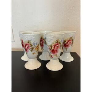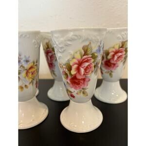 Vtg Limoges G. Labesse Porcelaine Goblets Parfait Cups Country Roses Chaby Chic