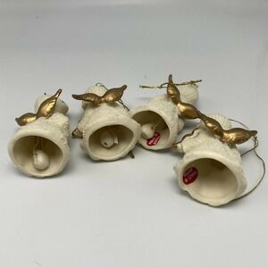 Vintage Lincolnshire Collection Jade Porcelain Golden Christmas Angel Ornamen set of 4. Condition is "Used".