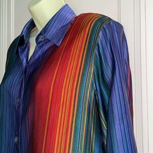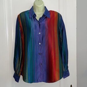 Vtg Linda Allard Ellen Tracy multi colored vertical striped silk shirt