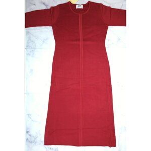 This vibrant red Vintage Linea Louis Dell Olio women's long dress is new with tags. Features a comfortable pullover style with a stretchable small size. Made from a cozy blend of acrylic and cotton.