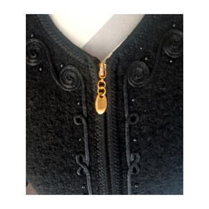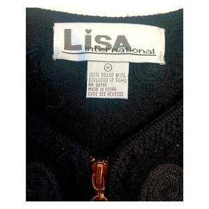 Vtg Lisa International Classic Boiled Wool Zip Vest Black on black trim Medium