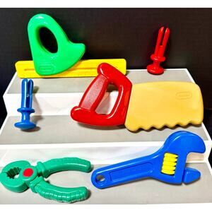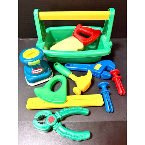 Vtg Little Tikes Hammer Straight Edge Hand Saw Wrench pliers Pretend Tool box