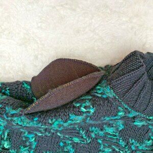 Vintage Liz Claiborne Collection Hand Knit Wool Blend Sweater Green Black Sz Small