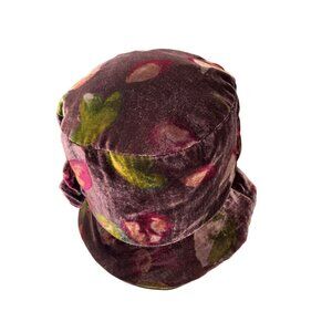 Vtg Liz Claiborne Purple Multi-Color Floral Velvet Bucket Hat, OSFM, Grannycore