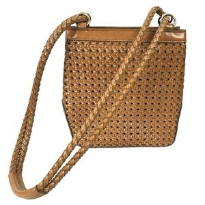 Vtg Liz Claiborne Square Bucket Shoulder Bag Brown Braided Vegan Coastal Preppy