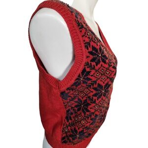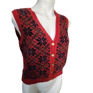 Vtg Liz sport wool red holiday sweater vest gold buttons Size small