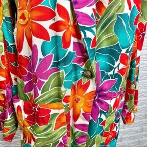 Vtg LizSport Multicolored Floral Lightweight Oversized Blazer Jacket Size Small