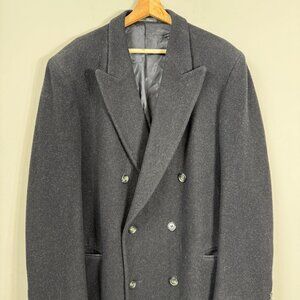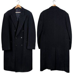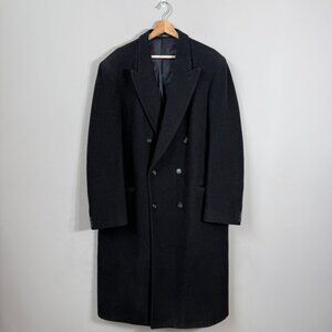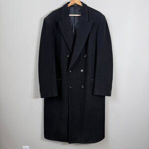 Vtg London Fog 100% Pure Wool Overcoat Mens 44L Black Double Breasted Minimalist