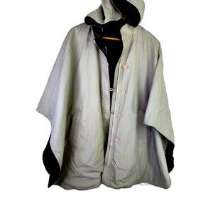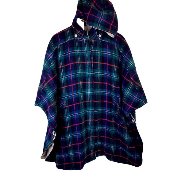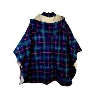 Vtg London Fog Women's Reversible Hoodie CapePoncho Plaid Wool Blend Coat Size M