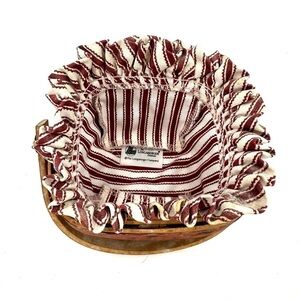 Comes as seen with Sweetheart Sentiments Basket, Plastic Protector, Red Ticking Stripe Fabric Liner, and original Care Pamphlet
