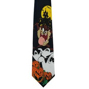 Vtg Looney Tunes Mania Neck Tie 4"x58" Halloween Taz Ghost Jack O Lantern 1996