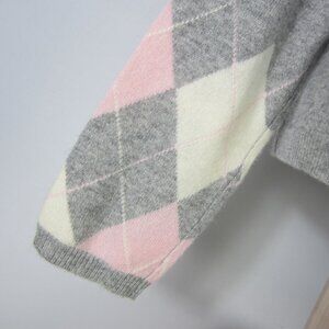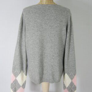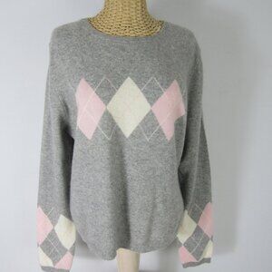 Vtg Lord & Taylor Women XL Gray Pink Argyle 2ply Cashmere LS Pullover Sweater
