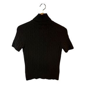 Vintage Lord & Taylor Women Cable Knit Cashmere Turtleneck Sweater Black Quiet Luxury