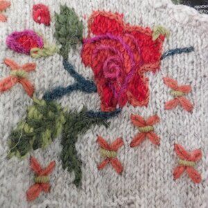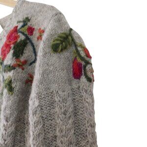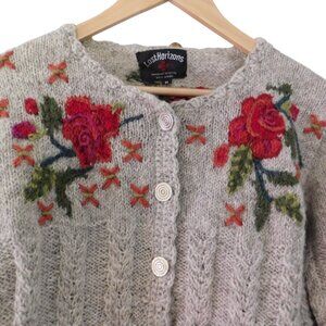 Vtg Lost Horizons Womens Hand Knit Cardigan Nepal Chunky Wool 3D Cropped Medium