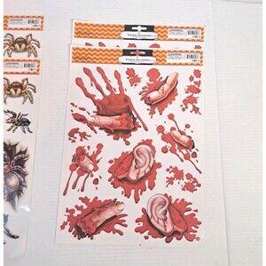 Vtg Lot 10 Halloween Window Clings Bloody Zombie Scary Static Reusable NEW