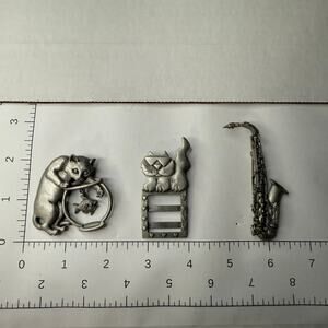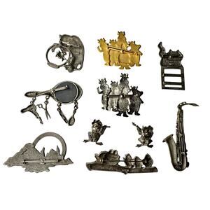 Vtg Lot (10) Signed JJ Brooches Fun Whimsical Cows Cats Frogs Sax Mirror Coyote