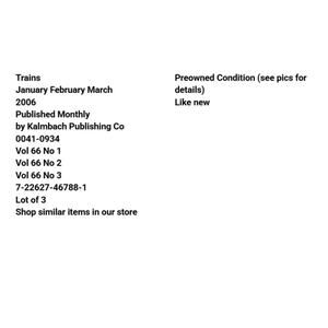 Trains January February March 2006 Published Monthly by Kalmbach Publishing Co 0041-0934 Vol 66 No 1 Vol 66 No 2 Vol 66 No 3 7-22627-46788-1 Lot of 3