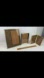 - A bi-fold tabletop frame that holds two 4x6 images (the glass is smaller than 4x6 so you may need to cut the image down a bit). Hinged.