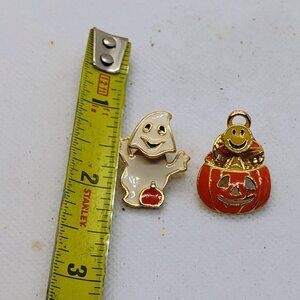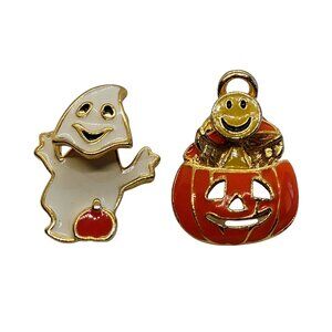 Vtg Lot of 2 Enamel Halloween Ghost & Pumpkin Pins