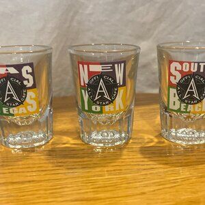 Vtg. Lot of 3 Shot glasses - All Star Cafes - Las Vegas, New York & South Beach