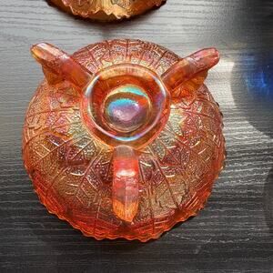 Vtg Lot of 4 Fenton "Leaf Tiers" Bowls Footed Carnival Glass Marigold Berry Bowl