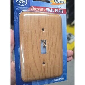 Vtg Lot of 5 GE Decorator Wall Plates Switch Cover Coated Steel Wood Grain