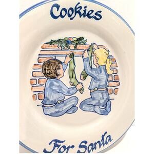 Add a touch of vintage charm to your holiday traditions with this adorable Louisville Stoneware 'Cookies For Santa' plate! This delightful plate features a sweet design of a boy and girl hanging stockings, creating a warm and inviting scene for Santa's treats.