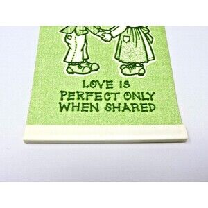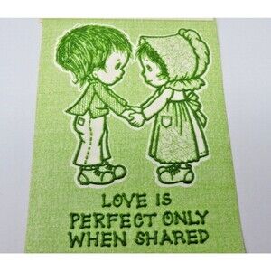 Vtg Love Perfect Only When Shared Boy Girl Green Raised Plastic Mini 4x6" Sign