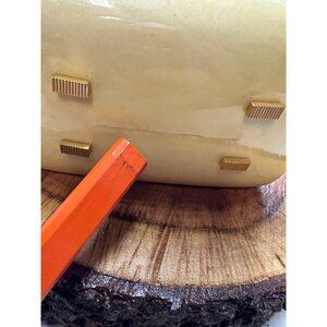 Please review all photos and measurements they are part of description. There are a few missing rhinestones on the handle and some crack marks . This is a vintage item showing signs of wear