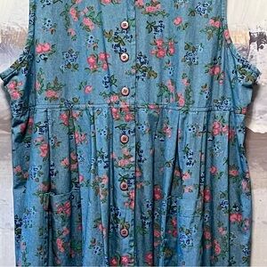 Vtg MAINSTREET BLUES Sz 22W Floral DENIM Jumper Dress Maxi Pintuck Patch Pockets