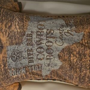 Embrace a rustic style with this Cowboy Boots graphic top. Perfect for casual outings, this peach and purple top adds a touch of country charm to your wardrobe.
